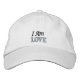 Casquette de baseball blanc, "I Am Love" personnalisé, avec broderie noire et rose. Une idée cadeau d'anniversaire cool.