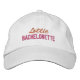 Casquette de baseball à chapeau avec nom en écriture rouge et description rose de "Bachelorette" brodée