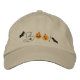 La broderie casquette amusante utilise le mot boo avec araignées, citrouilles et chauves-souris noires.