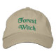 Un joli casquette de baseball kaki brodé vert avec la citation Forest Witch. Ce casquette de sorcières moderne peut être personnalisé à un nom ou un autre texte. Un cadeau d'anniversaire sorcier ou une idée de camping.