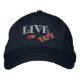 Couvrez votre poupée avec ce casquette de balle génial cousu avec amour avec le logo emblématique Live on Tape ! Vous serez l'envie de tout le monde quand vous ferez fièrement étalage de votre loyauté fanatique à l'émission de télévision Quad Cities qui a rendu la télévision géniale dans les années 80 et a confondu les paysans de l'est de l'Iowa.