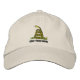 "Ne Pas Tread On Me" Casquette Brodé. Drapeau Gadsden symbole historique de la guerre révolutionnaire libertaire patriotique avec serpent. Le drapeau de Gadsden est un drapeau américain historique avec un champ jaune représentant un serpent à sonnette enroulé et prêt à frapper. En dessous du serpent se trouve la légende "Ne pas me rouler dessus". Le drapeau a été dessiné par et porte le nom du général et homme d'État américain Christopher Gadsden. L'utilisation du crotale de bois comme symbole des colonies américaines remonte aux publications de Benjamin Franklin. En 1751, il fit la première référence au crotale dans un commentaire satirique publié dans sa Pennsylvania Gazette. La Grande-Bretagne avait pour politique d'envoyer des criminels condamnés en Amérique, et Franklin a suggéré qu'ils remercient les Britanniques en envoyant des crotales en Angleterre. Considéré comme l'un des premiers drapeaux des États-Unis, le drapeau a été remplacé par le drapeau actuel des étoiles et des rayures (ou Old Glory). Depuis la Révolution, le drapeau a vu les temps de réintroduction à la fois comme un symbole du patriotisme américain et comme un symbole de désaccord avec le gouvernement.