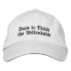 Beaucoup de couleurs de Casquette et de fil disponibles. Vous pouvez changer les mots. Et si vous êtes TROP CHICKEN pour penser l'impensable... Eh Bien, Dis Quelque Chose D'AUTRE ! Avec un Casquette blanc, vous pouvez dessiner des Motifs psychédéliques avec des stylos à feutre permanent ou des peintures acryliques.