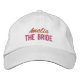 Chapeau de baseball brodé avec un nom en rouge et une description en rose de "La Mariée"