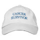 Le casquette brodé blanc dit "Survivant du cancer" en lettres bleues.