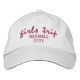 Voyage de filles Typographie moderne de script Personnalisé Casquette de baseball brodée personnalisée avec le texte brodé moderne simple "Voyage de filles" avec votre lieu et date ou année personnalisés. Parfait pour votre prochain voyage entre filles. Créé par Evco Studio www.zazzle.com/store/evcostudio