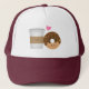 La bande dessinée mignonne et lunatique d'une tasse de café et du beignet avec l'arc-en-ciel arrose dans l'amour. Les couples parfaits appareillant pendant un jour doux ! Casquette de griffonnage de nourriture de Kawaii pour le café et amants et couples de beignet dans l'amour.