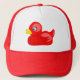 Illustration graphique simple d'un jouet rouge de canard de bande dessinée mignonne. Image disponible sur de divers cadeaux et produits. Customisez et choisissez votre propre couleur d'arrière - plan ou ajoutez le texte si vous avez besoin.