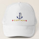 "Casquette de capitaines" orienté nautique avec une ancre bleue de bateau et des étoiles de rouge foncé. Le texte est une couleur d'or. La casquette de baseball de "CAPITAINE" est parfaite pour le "capitaine de bateau" dans votre vie ! Fait un cadeau merveilleux pour quelqu'un qui possède un voilier ou un yacht. Ajoutez un casquette de baseball assorti du "premier compagnon". Pour voir des produits-Svp plus grands visiter mon magasin "la princesse de Hungarican" chez www.zazzle.com/hungaricanprincess*.