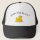 Canard en caoutchouc mignon avec "ce qui le canard" au-dessus de lui
