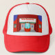 Les étoiles sont en pleine force sur ce chapeau de Trucker Retro Movie Theater - à la fois les étoiles dans le ciel nocturne et les étoiles sur l'écran d'argent. Ce style des années 1960, minimaliste, présente l'extérieur d'une maison de cinéma classique de l'âge d'or du cinéma. Le bâtiment rouge a une marquise brillamment éclairée, qui dit, "MAINTENANT MONTRER", en lettres rouges. Sous le marquis, un employé de théâtre est prêt pour une foule de cinéphiles, qui sont sûrs de faire la queue en masse. La silhouette de la coupe propre, ouvrier de théâtre est juste visible à travers le verre aqua de la billetterie de bureau. On ne trouve pas un noyau de pop-corn sur le trottoir gris impeccable. Deux portes grises encadrent la billetterie. L'avant du bâtiment présente des affiches de films en noir et blanc entourées de cadres lumineux. L'une des affiches montre des stars croisées dans une scène dramatique et l'autre montre une starlette en maillot de bain dont la carrière est aussi brillante que le soleil qu'elle adore. Ce produit provient des esprits brillants de Zazzle's StrangeLittleOnion, qui vous ont apporté des classiques cultes tels que Retro Pool Party, Film Noir Martini et Retro Space Age Cartoon Couple. Les critiques sont d'accord ; si vous ne pouvez acheter qu'un dessin cette saison, faites-le celui-ci (ou n'importe lequel des autres modèles spectaculaires StrangeLittleOnion)!