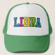 Un chapeau de camionneur qui porte le mot 'Libra' écrit dans une police athlétique colorée. Ce casquette est disponible en 11 combinaisons de couleurs différentes.