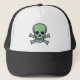 Les chapeaux camionneurs de crâne vert sont une fête d'Halloween spéciale pour les fans d'horreur, les fans de mystère de meurtre, les Goths, collectionneurs de crâne, les joueurs de cosplay, les joueurs de jeu de rôle, les rockers, ou juste des gens qui aiment les crânes et aiment le montrer. Le crâne vert est l'art original de Steamy Raimon.
