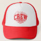 Christmas Crew Personalized Family Name Baseball Cap Trucker Hat features the text "Christmas Crew making memories together (add personalized name)" in modern red script typography. Perfect for Christmas gifts, family Christmas parties, family reunions and holiday celebrations and more. Created by Evco Studio www.zazzle.com/store/evcostudio