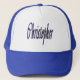 Le logo de Christopher, le nom d'une étoile bleue, figure sur ce casquette.