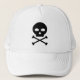 Chapeau de camion avec un dessin contenant le dessin simple d'un crâne et des os de croisement. La couleur du remplissage et des traits (bordures) du crâne et des os, ainsi que la taille, peuvent être changés à votre préférence dans la section "Modifier cette conception".