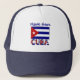 Personalized trucker hat shows the Cuban Flag with the word CUBA below the flag in the same colors. Uses dark blue stripes. Above, a spot for your name so you can create a personalized trucker hat or gift. Look your best and celebrate your heritage at your next family reunion.