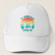 Ce casquette cool de coucher de soleil de cactus est customisé avec votre nom de famille pour un voyage à Phoenix Arizona ou une autre ville d'oasis désertique. Casquettes de vacances personnalisés dans des couleurs vives, amusantes turquoise et orange avec un script personnalisé grunge.