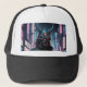 Cette image intense dépeint un dangereux samouraï démon, orné d'une tenue futuriste et sombre et d'un masque aux yeux et cornes rouges brillants. Situé dans un environnement urbain néon-éclairé inspiré de l'esthétique cyberpunk, le personnage se dresse au milieu de nombreux signes et symboles illuminés, suggérant un paysage urbain animé et high-tech.