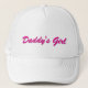 This is a cute ball cap for "Daddy's Girl", featuring those words in pink text on a white cap...make your point!