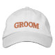 Casquettes brodées : Casquette de baseball classique de couleur or / blanc avec le texte "GROOM" pour l'enterrement de vie de garçon, mariage, déguisement pour soirée costumée