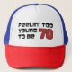 Casquette de camionneur Sentir trop jeune pour avoir 70 ans. Un excellent chapeau pour une personne active de soixante-dix ans. Célébrez-vous votre 70e anniversaire tout en restant jeune de cœur ? Un excellent cadeau pour quelqu'un d'énergique à soixante-dix ans.