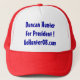 Texte bleu sur l'arrière - plan blanc, casquette rouge. Favorise le site Web 2008 du candidat présidentiel Duncan Hunter.