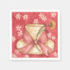 Serviettes en papier avec arrière - plan rouge et casquette avec arc rouge et fleur. Une partie de la collection de cuisine Ladylike.