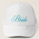 Ce casquette de baseball présente un design de texte bleu : Mariée - idéal pour les épouses à être!
