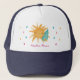 Casquette " de Maui de Haiku" avec une illustration d'un soleil heureux et d'une goutte de pluie entourés par les gouttes de pluie colorées.