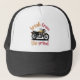 Une casquette présentant une moto rétro, avec la phrase "Échapper à la routine" centrée autour de l'image. Le design suggère un sentiment d'aventure et de liberté, offrant une échappatoire paisible à la routine quotidienne.