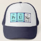 Prune est décrite comme Pr U Ne (Praseodymium Uranium Neon) sur un casquette pour le scientifique en vous.