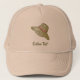 Jaune, dessiné à la main casquette d'été de femme avec petit ruban arc rose.