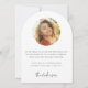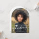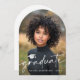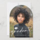 Carte de faire-part photo en forme d'arc avec votre photo, une casquette de graduation et le texte "gradué" dans une police de script moderne et élégant. Ajoutez une photo supplémentaire et un message personnalisé au dos.