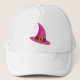Illustration d'un mignon casquette de sorcière rose caricature pour les amateurs d'halloween et de sorcière. Ce design est une idée cadeau pour les amateurs d'esthétique féminine et les amateurs de couleurs fuchsia ou magenta.