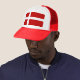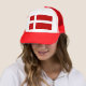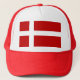 Le drapeau rouge et blanc du Danemark, ou Dannebrog, a une croix nordique ou scandinave. Le rouge est l'arrière - plan, la croix est en blanc. Le drapeau danois apparaît ici sur un chapeau de camionneur.