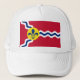 Casquette avec drapeau de la ville de Saint-Louis; drapeau rouge avec vagues blanches et bleues et fleur de lys bleu en cercle jaune