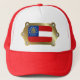 Le design imprimé sur ce casquette est orné du drapeau géorgien entouré d'un cadre métallique.
