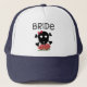 Cool squelette de mariée pour mariées de la hanche, mariées gothiques ou mariées d'Halloween. Ce crâne a un arc rouge et des fleurs rouges et le mot marié en noir et blanc.