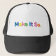 Ce t-shirt est décoré de l'emblématique phrase de Star Trek "Make It So." dans une police multicolore et rétro-futuriste. Le texte est rendu avec un effet de dégradé cool, passant par les nuances de bleu, vert et orange, lui donnant une sensation de science-fiction classique. Le design est propre et audacieux, se concentrant entièrement sur le célèbre commandement du capitaine Picard.
