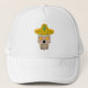 This awesome a fea graphic design image of a Mexican Day of the Dead (Dia de los Muertos) inspecskull. Le Skull is a pale gray color and is wearing a yellow sombrero. It has gold teeth et Mexican Sunflowers, donc called tithonias< instead of eyes. The sombrero has a cactus on it and is covered in pretty swirl patterns and red and green Chilli peppers. The skull itself is covered in pretty colored flowers of different types.