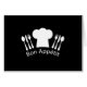 Les gourmets et les fins gourmets aimeront le casquette ou la "toque" de ce chef français classique entourée par l'argenterie (couteau, fourchette et cuillère) avec les mots "appetit de fève" au-dessous de elle.