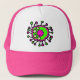 Virus rose et vert de bande dessinée mignonne de germe sur un casquette.