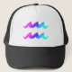 Le Verseau signent dedans l'aqua et le magenta bleus pourpres sur le casquette noir et blanc. Ce casquette vient dans d'autres combinaisons de couleurs aussi bien. Bénédictions heureuses de COM de point bonne de souhait heureuse.