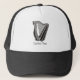 Icône de harpe noire et blanche avec décoration de noeud celtique. Texte personnalisé.