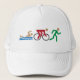 Pictographes d'icône de triathlon avec le nageur, le cycliste, et les icônes de coureur en couleurs pour une déclaration audacieuse d'athlète. La conception rouge, bleue, et verte ajoute une torsion aux symboles traditionnels d'icône. Ajoutez votre propre texte ci-dessus ou ci-dessous si désiré.