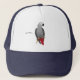Un perroquet gris africain intelligent dans un style d'illustration amusant.