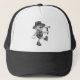 Ce chapeau imprimé géologie amusant présente un géologue de dessin animé insouciant dans un style noir et blanc rétro des années 1930-1940. Avec son marteau de roche dans la main et sa loupe autour du cou, il est prêt pour une journée amusante sur le terrain.