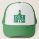 Caractéristiques de conception du jour de ce St Patrick mignon un petit lutin vert avec un grand shamrock dans son casquette se reposant Irlandais sur grands textes verts "pendant un jour.