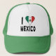 Casquette de camionneur avec un drapeau mexicain en forme de cœur au lieu du mot LOVE. Le design indique J'AIME LE MEXIQUE. Le drapeau est vert, blanc et rouge avec un aigle au centre. Un favori amusant pour les célébrations de Cinco de Mayo, ou toute occasion spéciale.